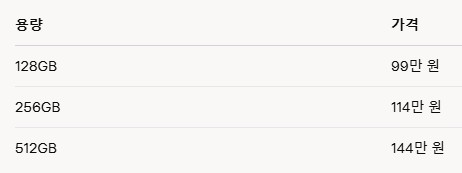 아이폰 16e의 가격은 용량에 따라 아래와 같이 책정되었다.